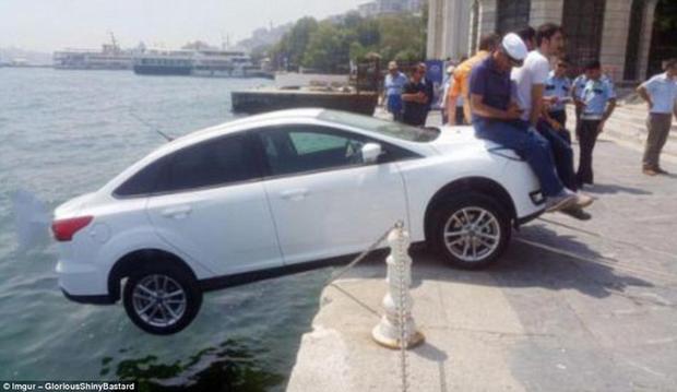 图中这名男子在停车之后忘记了拉手刹。