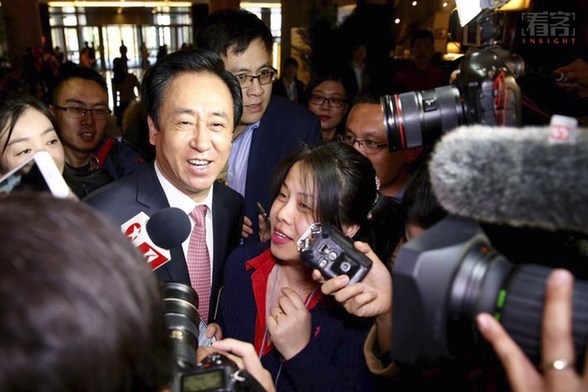 每年两会时间,商人和明星这两类人物现身后一般会遭到记者围追堵截。虽然他们不是这场世界上最大的“会议秀”中的最重要人物,但是他们却是这部“两会大电影”的主角。2017年3月4日,北京,全国政协委员、恒大集团董事会主席许家印现身政协经济届别小组讨论会场。车亮/视觉中国