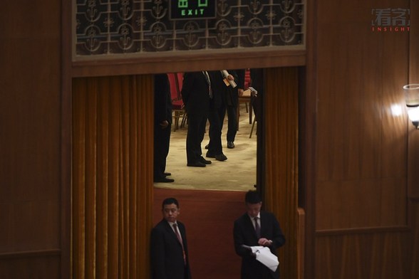 2017年3月5日,北京,十二届全国人大五次会议在人民大会堂举行开幕会,安保人员。Etienne Oliveau/Getty Images/视觉中国