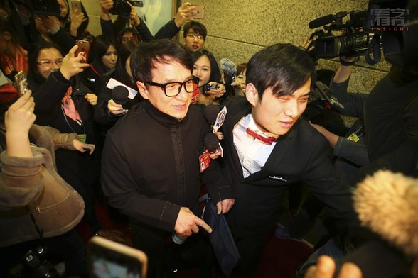 2017年3月5日下午,北京,全国政协十二届五次会议举行各界别分组讨论会。成龙到场,媒体记者“围堵”采访。大萌/视觉中国