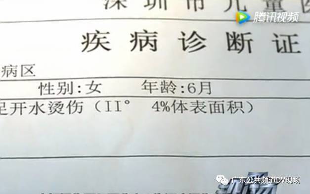 深圳市儿童医院及市二医院诊断,小妍烫伤面积百分之4,为深度烫伤Ⅱ度。由于婴儿只有几个月大,为了不留伤疤后续需要植皮手术。