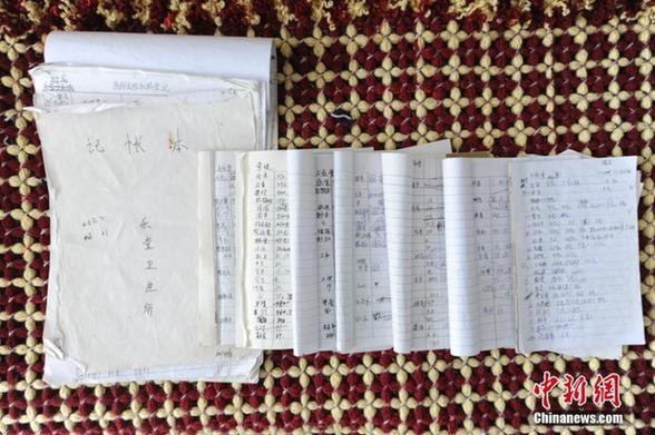 媒体公开报道称,16年间,贺星龙医诊病人4600多人,出诊率达165000人次,每年为留守儿童打疫苗1080人,每年发放营养包240人;免收出诊费350000余元,免收13户五保户药费45689元,背负23500余元债务…… 贺星龙家里有许多账本,上面记载的是近4年患者赊欠医药费的账目。山西省卫生计生委供图