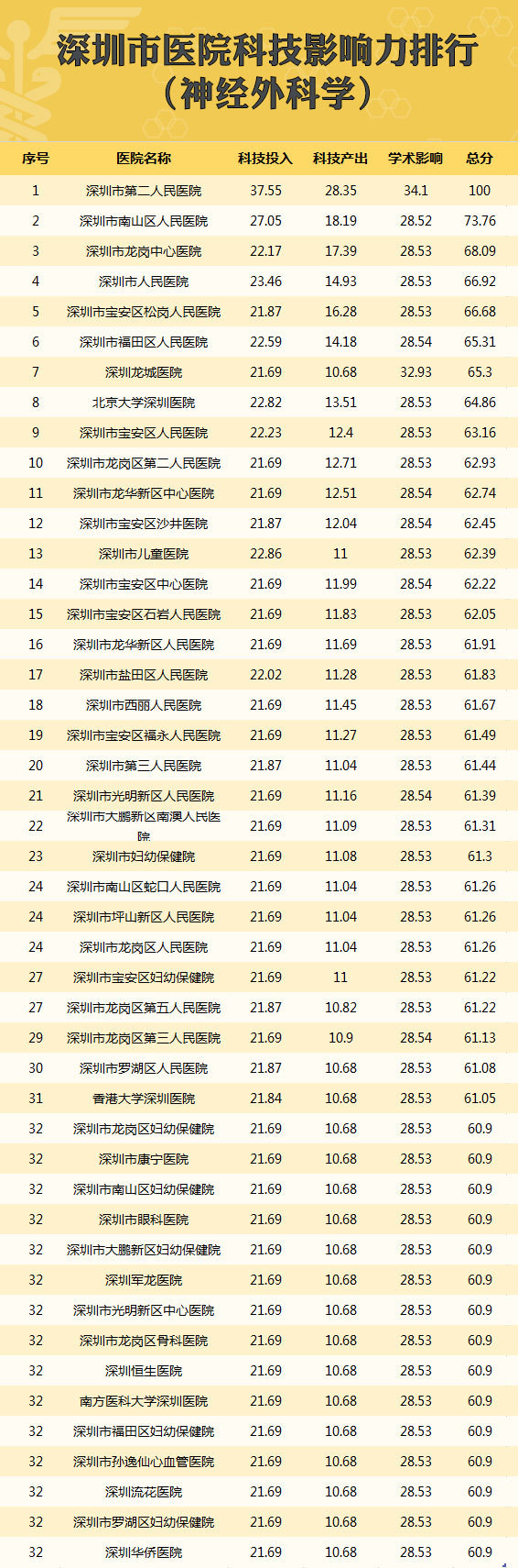 深圳首个医院科技影响力排行榜!26个学科冠军诞生,你关心的医院在哪?