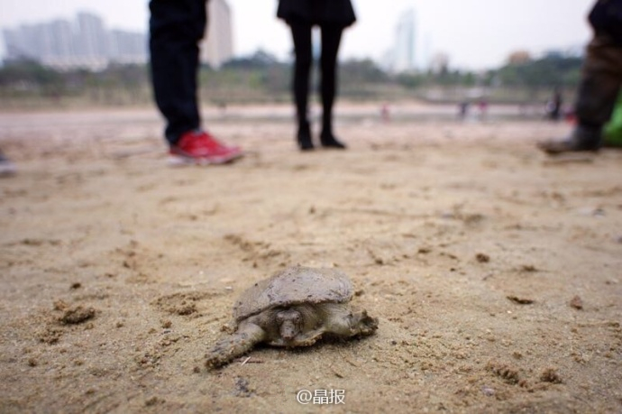 近日,因为要换水提升水质,深圳市中心公园的小池塘内一夜之间被抽掉一大半湖水,露出了湖底,引得不少居民天没亮就下湖摸鱼。