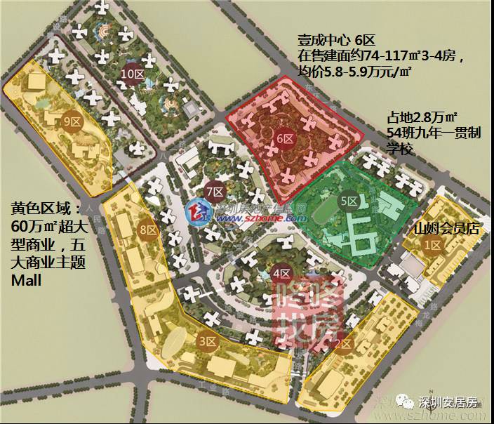 目前,1、5、9区已经建设完毕,6、7、8区在建设当中,2、3、4、10区未开始动工。