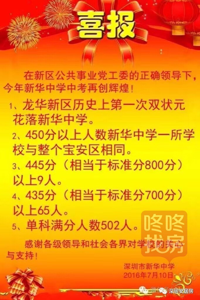除此之外,但让我们把目光投向新华中学,该校近几年的高考成绩都不错,在龙华区里名列第一,喜报如下。