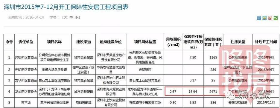 壹成中心位于龙华区龙华办事处,提供2471套公租房给轮候库。