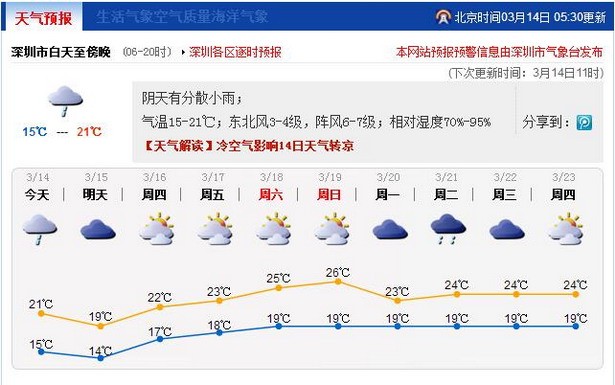 深圳新闻网3月13日讯(记者 刘梦婷)14日白天冷空气影响深圳,近日出现轻度的“回南天”现象将有所缓解。