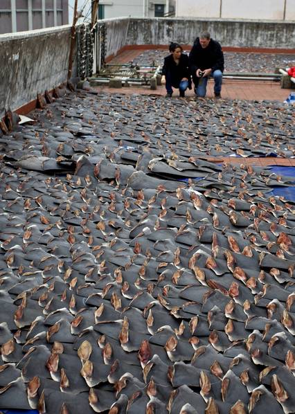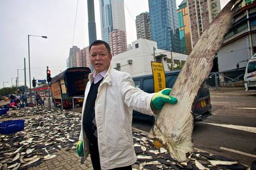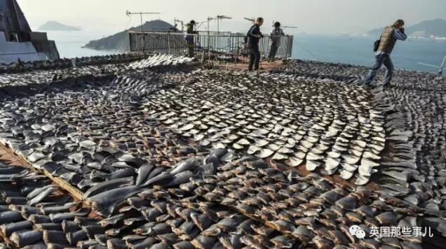 在香港,时常能看到大量的鱼翅堆积在街头。