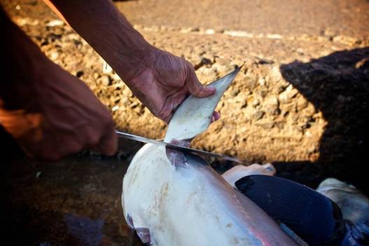 鲨鱼的鳍被割下后,人们会把鲨鱼再次抛回大海。