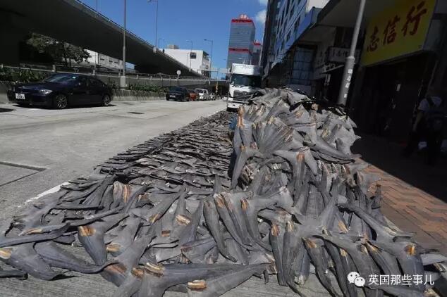 在香港,时常能看到大量的鱼翅堆积在街头。