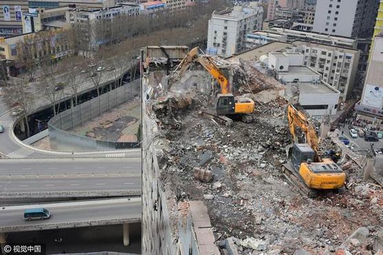 3月15日上午,市民李先生爆料称:郑州金水路南阳路口东北角,一栋在拆的12层大楼楼顶,远远看到挖掘机在楼顶作业,这两台挖掘机是如何上到30多米高楼顶的?