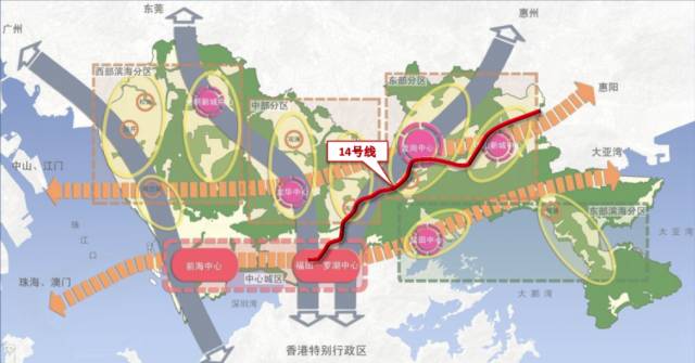14号线路深圳段总长50.6公里,深圳段规划站点:岗厦北——黄木岗——清水河——布吉——石芽岭——四联——坳背——大运——南约——沙湖——朱洋坑——坪山坑梓——坪山沙田;惠阳段则拟设立了3个站,分别是白云站、草洋站、惠州南站。