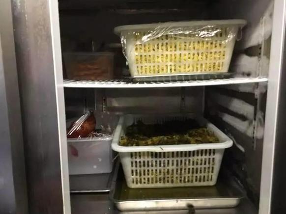 3. 冷藏柜食物贮藏合规,温度显示零下7.7度,符合要求。