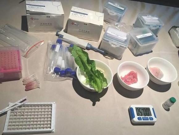5.现场检测餐厅原材料,主要检测是否含非法添加物,牛肉是否含瘦肉精,鱼肉是否含氯霉素,检测结果显示不含此类非法添加物,合格。