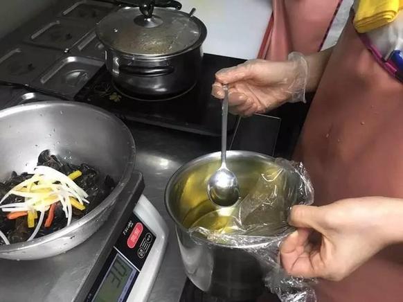 执法人员根据餐饮量化等级表评分,关键项没有不符合,一般项1项不符合(操作员佩戴操作帽部分头发露在外面)。根据现场检查情况,汉拿山已具备A级餐厅要求。