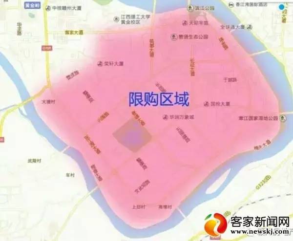 ▲此次赣州市中心城区实施住房限购措施的区域。图片来源:客家新闻网