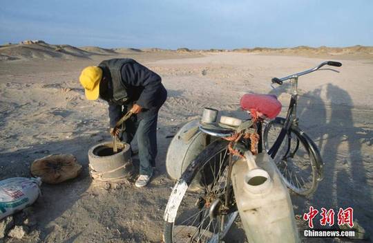 茫茫大漠孤城,一直以来都只有一位守城人在这里默默相守,王大爷就是其中一位。图为黑城外唯一的水井。