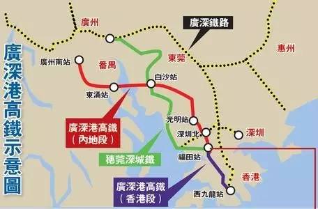 建成后,乘客由香港至广州南将用时48分钟,由香港至深圳北为23分钟