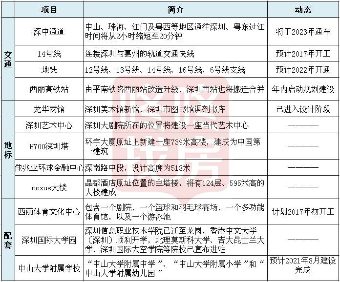 2、随着龙岗、宝安、龙华、光明、坪山等地区建成市政地标(图书馆、大学等),深圳各片区同质化趋势发展,原关内、关外概念逐渐淡化,直至消失。