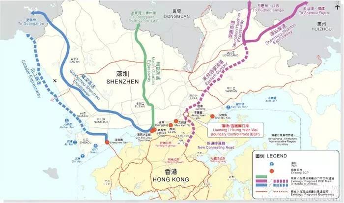 与深圳10条高速公路和8条一级公路交叉串连,加强珠三角交通骨架