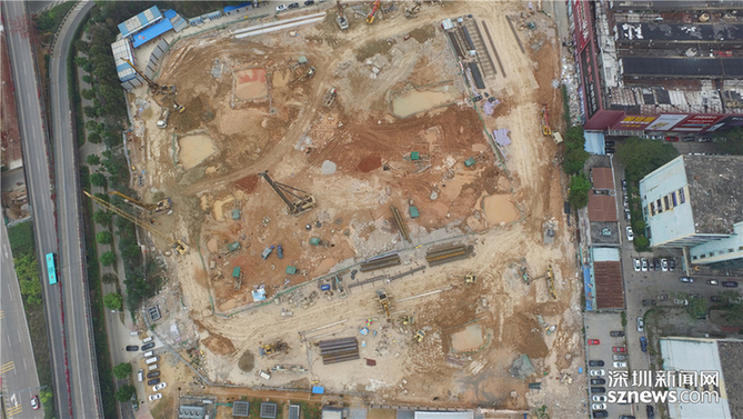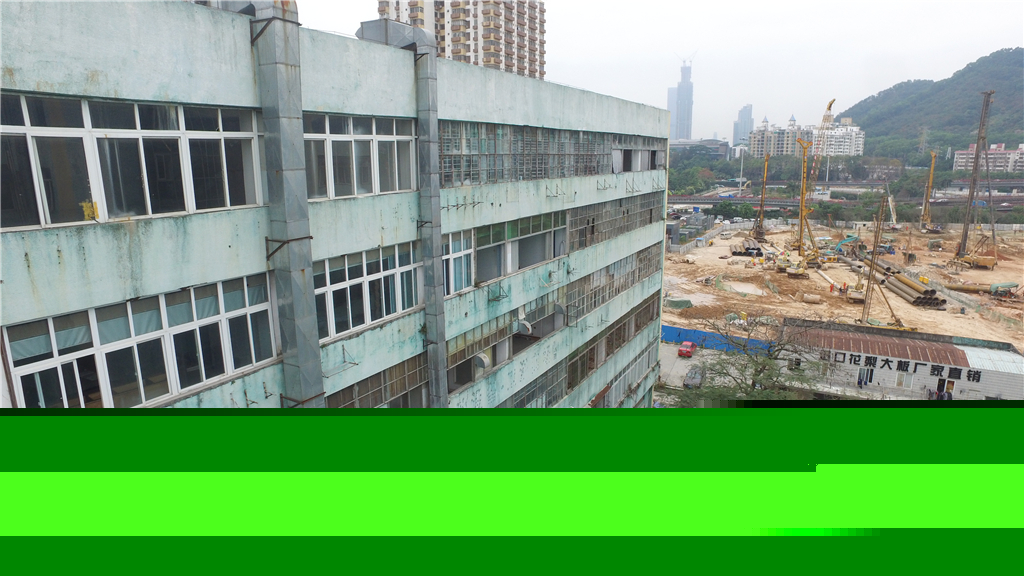 八卦岭旧改区航拍图:左边工地为旧改区内在建项目,右边厂房等待拆迁