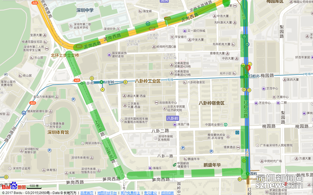 八卦岭旧改区航拍图:八卦岭地铁站D出口在建的旧改项目及周边道路