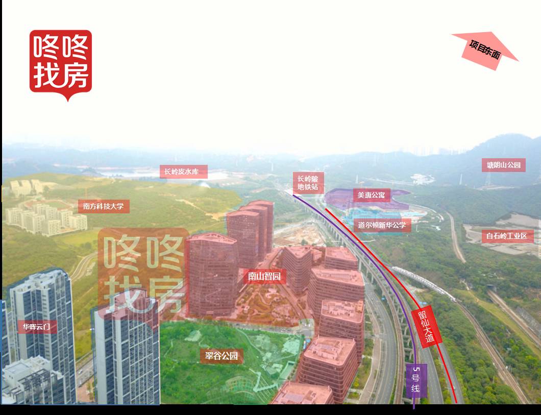 项目东面视野同样开阔,远可眺长岭皮水库、南科大;近可观塘朗山公园、翠谷公园,秀色可餐。
