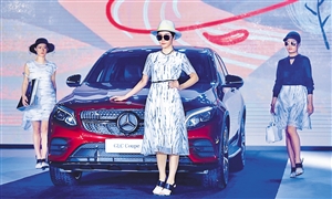3月18日晚,一场汽车与服装结合的品牌秀在欢乐海岸上演。图为模特在展示艺之卉服装。 深圳商报记者 钟华登 摄