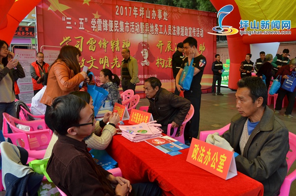 深圳新闻网坪山讯(记者 史韬 邱嘉熙 通讯员 赖小乐 彭媛婷)近日,坪山街道办事处在泰华广场举办2017年坪山街道办事处“三·五”学雷锋暨异地务工人员法律援助宣传活动,将普法活动和学雷锋、做好事公益宣传相结合,获得参与活动群众的一致好评。