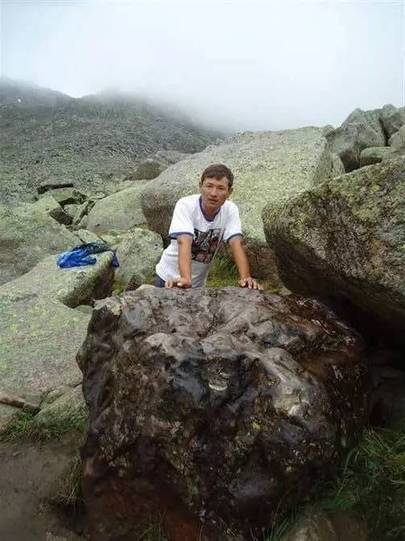 坠落的星星属于谁?因为这个问题,新疆牧民朱曼一家的官司已经打了一年多。3月20日,该案终于在新疆阿勒泰市人民法院开庭。图为朱曼的大儿子肯杰别克·热阿玛扎恩与陨石的合照。