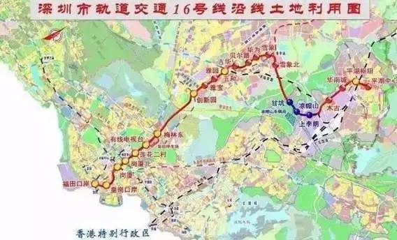 深圳地铁16号线由福田区到龙岗中心城片区,连接福田南、福田中心区、梅林片区、中部(平湖)物流组团、龙岗中心城等。