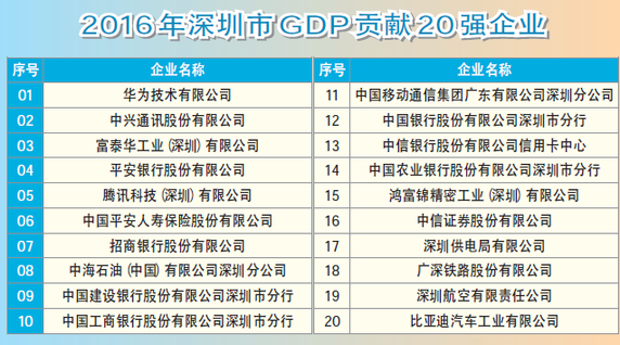 深圳新闻网讯 3月21日,深圳市统计局正式搬迁至市民中心办公,并举行2016年深圳市GDP总量贡献最大的20强企业(以下简称“20强企业”)的颁奖授牌仪式。记者了解到,去年深圳GDP贡献20强企业合计实现增加值5171.42亿元,占深圳市GDP比重近3成,其中包括华为、中兴、比亚迪、腾讯等实体经济企业,以及招商、平安等服务实体的金融企业。