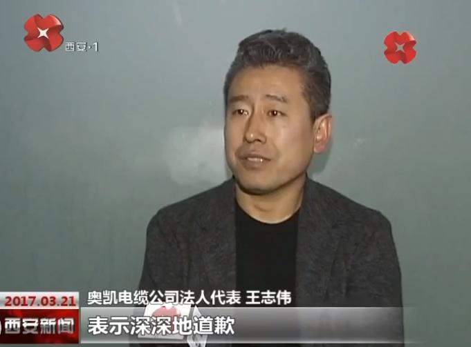 3月21日,微信公号“西安发布”发布消息称,记者采访了奥凯公司法人代表王志伟,面对镜头,王志伟对奥凯公司以次充好、供应不合格电缆的行为供认不讳,并表示对自己的行为非常后悔,愿意接受法律制裁,向全市人民悔罪、道歉。