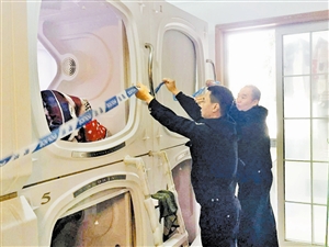 果不其然,当民警打开房门后,看到该房为上下两层复式结构的房子,面积共100多平方米,却放置了30个“胶囊太空舱”,而每个“太空舱”面积不足2平方米,只能容纳一个人睡觉。“太空舱”内部除了基本的床单被子外,还有排气扇、保险柜、手机充电器等设施,但是电线乱接乱拉,房间内只有2个小型的灭火器,消防设备严重不足。