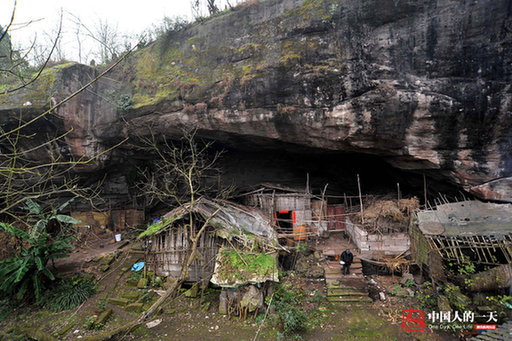 临江乡境内有一座灵隐寺,距寺庙20余米处有一天然石洞,当地人称为“硝洞”。出洞口是一片临空突兀的石崖,犹如一片“巨瓦”,为下方两百余平方米的空地遮风避雨,梁自付的家就在这里。
