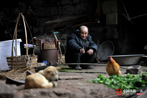 妻子李素英因为心脏不适,于2016年底去了大儿子在四川崇州的家休养看病,留下梁自付一个人守在这里。“这辈子是苦了她了”,梁自付说,当年家里穷,修不起房,才在石崖下用乱石垒了个家。现在,家里只有一条黄狗和几只鸡陪伴他。