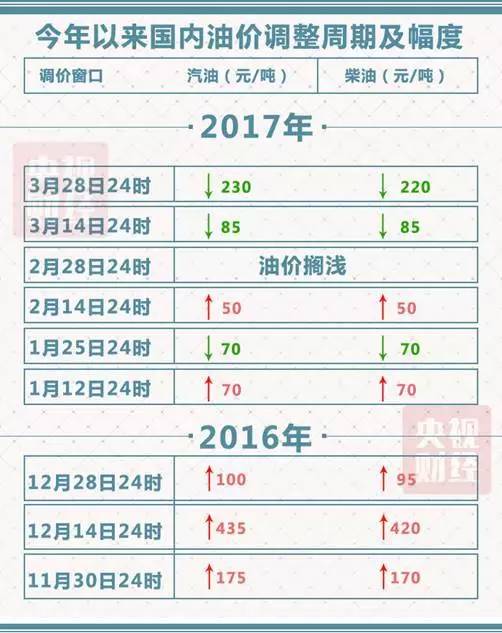 3月28日24时,2017年第6次成品油调价窗口将再次开启。本轮调价周期内,美国原油库存、产量双升态势打压市场,国际油价大幅下降。受此影响,国内成品油价格应声下调。记者刚刚从国家发改委获悉, 此次油价调整具体为:汽油每吨将下调230元,柴油每吨将下调220元,创下年内最大降幅。