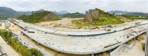 南坪快速路三期工程横跨龙岗区及坪山新区,道路西起水官高速公路横坪立交,东至聚龙路(规划外环高速公路田头立交),全长约22.2公里,其建成后不仅将大大缓解龙岗、坪山的内部交通压力,还将和南坪一期、二期一起形成深圳市第二圈层的横向联系通道,快速串联起坪山、横岗、龙华、南山和西部港区。