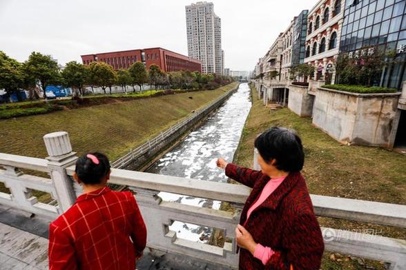 这条河流是注入八里湖之后,直接流向长江的,引起了广大市民的担忧,是否影响健康。江西九江市环保部门的高度重视,目前,环保工作人员正在寻找污染源头,排查企业是否排污。
