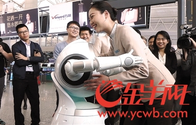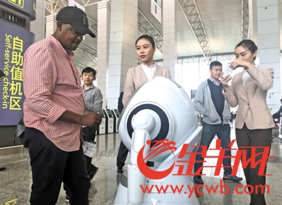 “你好,可以带我去洗手间吗?“您好!我是云朵,请您跟我来。”话刚落音,这位大圆脸的机器人便领着旅客去找洗手间。昨日,在白云国际机场航站楼,“实习生”机器人“云朵”大受追捧,不断有旅客迎上来体验“云朵”的服务。