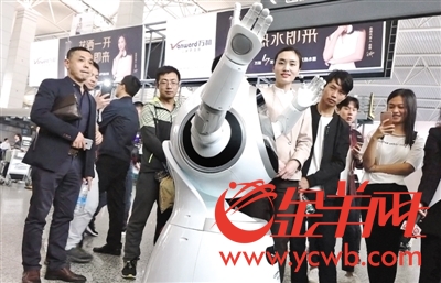 记者了解到,“云朵”是由白云机场与优必选科技联合研发的这款服务型机器人,采用类人形及全自由度的灵活双臂设计,基于3个全向轮,可以像人一样自由移动,灵活的手臂还可以摆出许多姿态。它集成了地图同步构建及定位(SLAM)、精准人脸识别、大数据采集管理分析等先进技术。