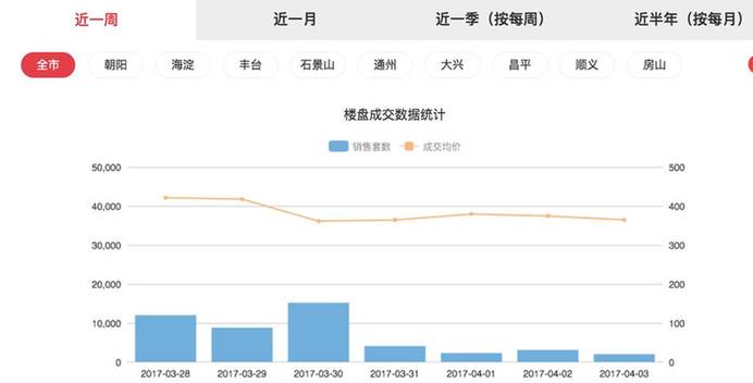 今年1月、2月、3月,北京楼市交易量基本持平。然而,从3月31日起,新建住房成交量却比之前一周每日成交了大幅减少。其中3月30日,成交量为152套;3月26日为148套,而且在从3月1日~30日期间,仅有3月20日一天交易量少于50套。而3月31日起的4天,交易量均小于50套,而且在昨天(4月3日)仅成交20套。