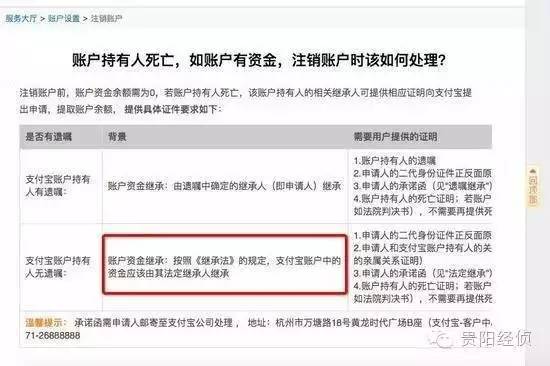 支付宝相关人士表示:“只要按照《继承法》相关规定提供必要的手续,支付宝里的钱都可以依法继承。”此外,继承财付通账户的余额就与继承银行账号中的财产一样,有被继承人遗嘱的,需要提供遗嘱,以及公安机关开具的继承人和被继承人关系的证明。