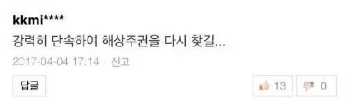 参考消息网-锐参考小编日前浏览韩国新闻网站后发现,对此次韩国海警设立特别警备团、甚至搬出“民族英雄”来对付中国渔民的举动,多数韩国网友“一边倒地”表达支持:“干的好,加油!”“强硬监测,坚决护卫海上主权。”