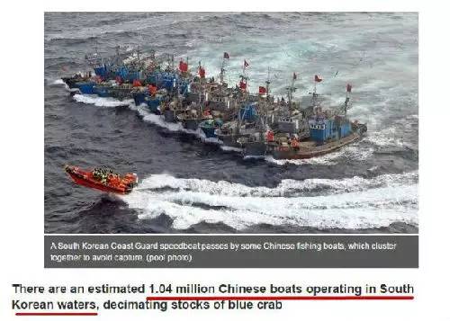 文中称,这一数据来自韩国海警,这104万艘中国渔船,是被准许在韩国水域捕鱼船只数量的600倍。