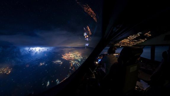 这张照片显示了加拿大多伦多的一次风暴,是海斯特作为乘客乘坐飞机时拍摄的。他在拍摄时使用鱼眼镜头,创造了照相机在机舱之外的幻觉。