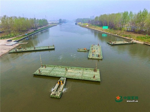 “浮桥架设,开始作业!”随着浮桥长一声令下,浮桥架设作业在京杭大运河上火热展开。4月4日至7日,工程兵学院组织2016级生长干部培训学员赴京杭运河开展浮桥架设作业,全面锤炼即将毕业学员的组织指挥能力,提升专业技能水平。