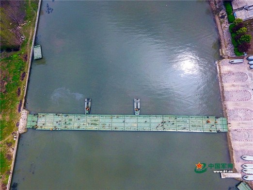 巨型积木这么玩:航拍京杭大运河浮桥架设