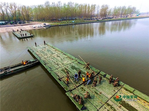 巨型积木这么玩:航拍京杭大运河浮桥架设